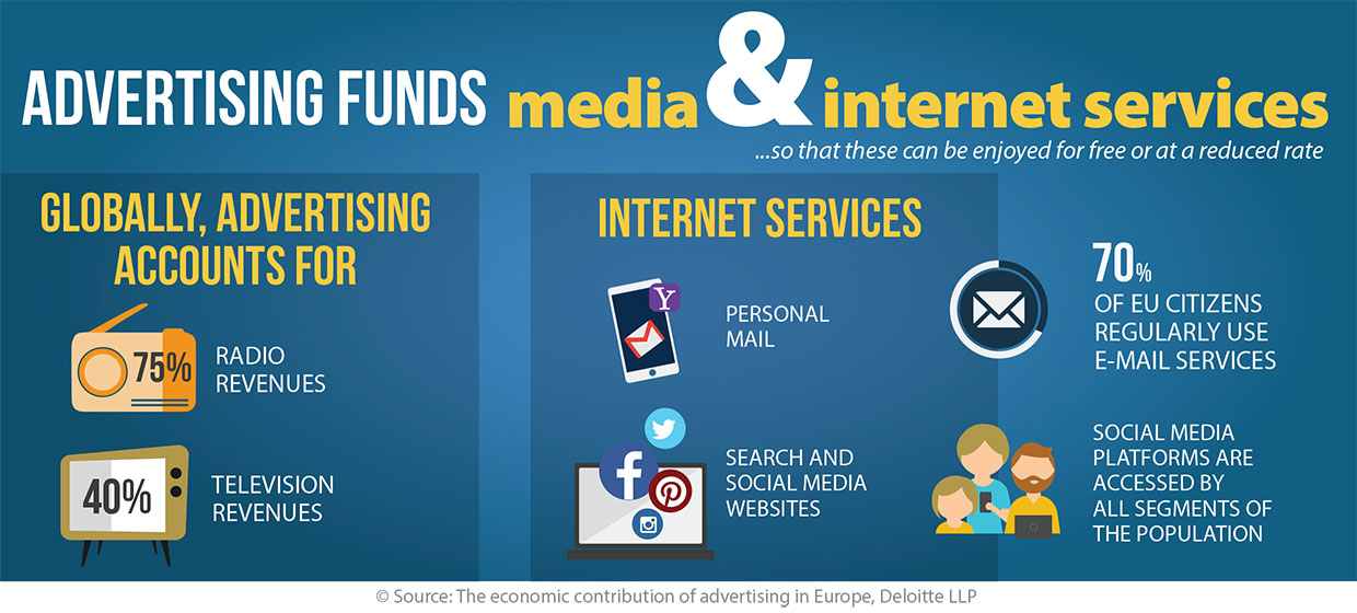 On the internet, advertising largely funds free services that people across Europe use at little or no cost. For example, around 70% of EU citizens regularly use email services, while social media are accessed by all segments of the population.