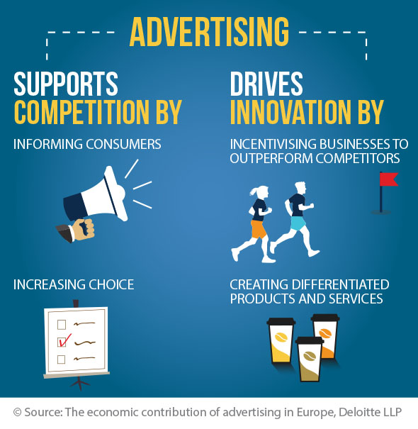 Advertising contributes to wider economic growth through its ability to support competitiveness. It provides consumers with information on products and services, and helps to increase their choice of goods and services.